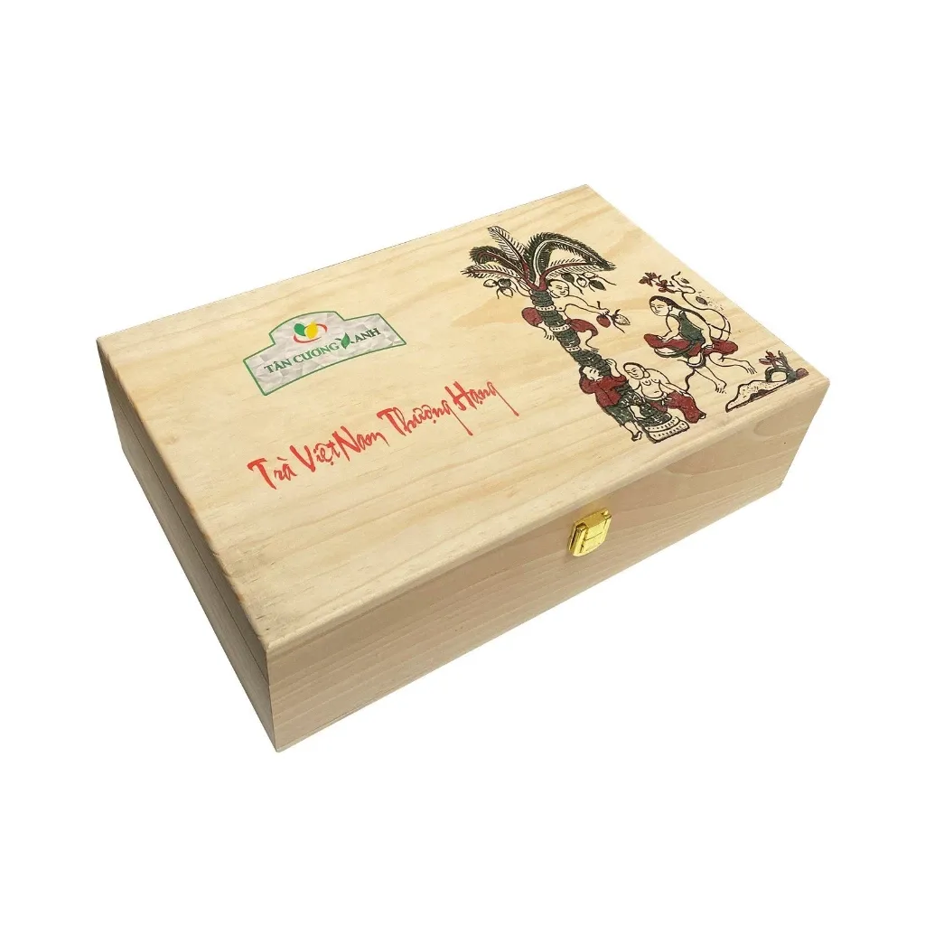 - ✔️ Chất liệu bao bì: Gỗ thông tự nhiên chạm tranh Đông Hồ